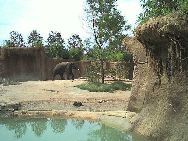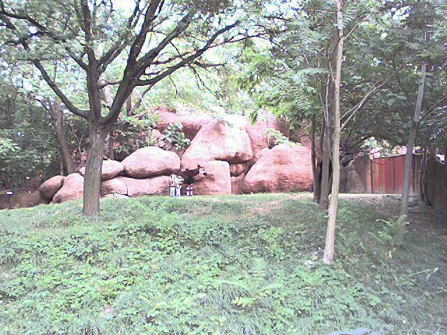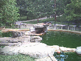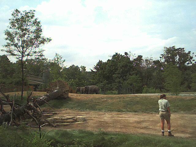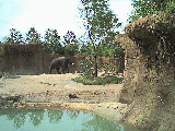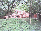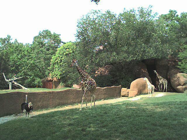 This trip is a little different of course, because of the recent acquisition of a digital camera -- nothing fancy, in fact after the rebates it was less than $60 -- but it takes about 22 (compressed JPEG) pictures which you then have to download to a computer, so I carted my ancient notebook along with us to serve as storage. This trip was a short 3 day deal to a timeshare resort south of St. Louis, hence the reference to the old song in the page title. Our check-in wasn't until 5:00 so we stopped by the Zoo in Forrest Park for a few hours, so Laura could see the big animals that our little local zoo can't even dream of having, such as....
