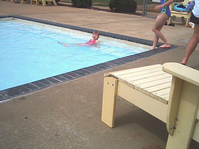 Laura made friends with the girl partially visible in the upper left corner of the top 2 pictures (her name was Kelly), and if you look at the top of the last picture, you'll find yours truly looking a little pink. After all that walking the day before, and swimming that day, we were pretty tired, and went to bed (after soaking in the whirlpool tub of course).